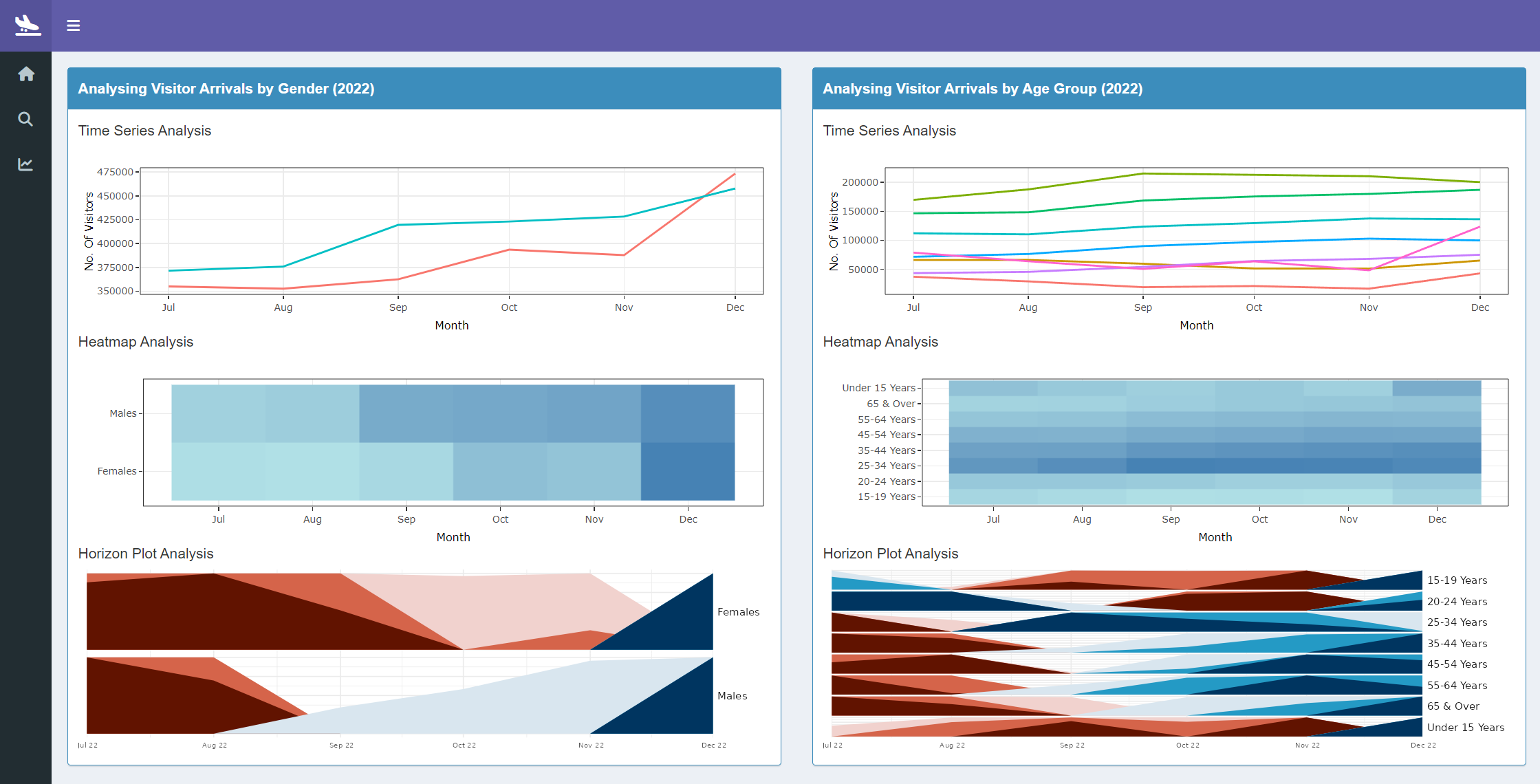 c. The visualization of horizon pot analysis for visitor arrivals by month and gender