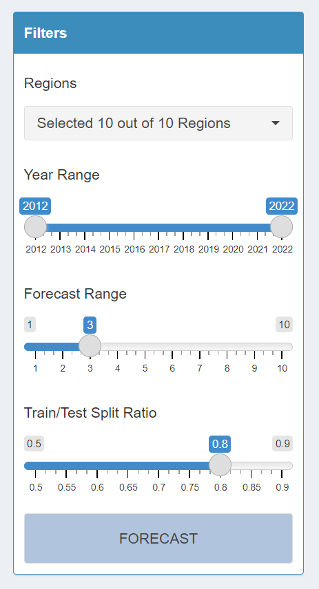 Year Rangeslider. The default year range is from2018to2022. - Choose the year range that is to be forecast using the